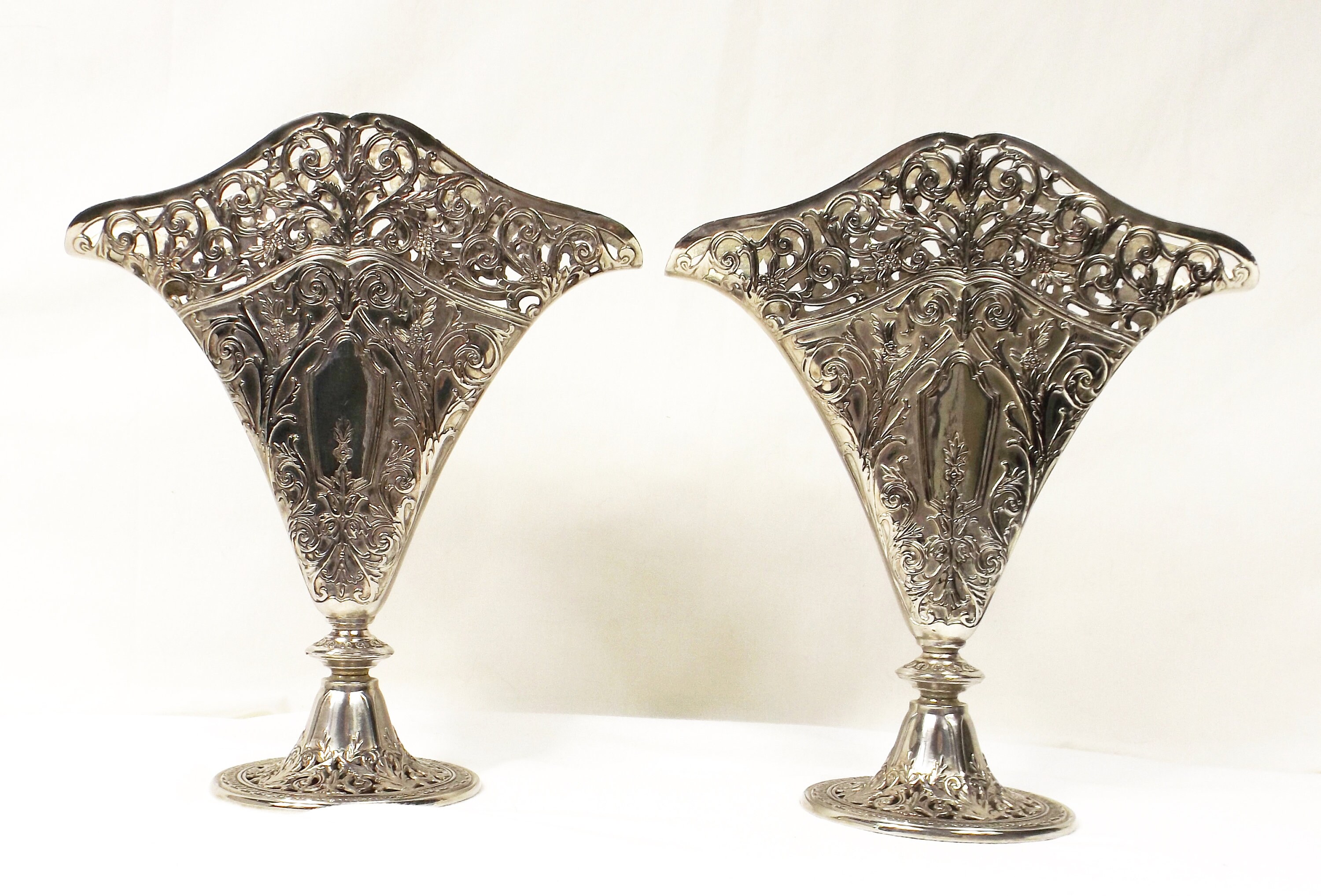 Vintage Godinger Silver Art Nouveau Fluted Flat Lattice Fan Vase Gsa Ebay