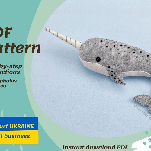 Narwhal Toy Sewing Pattern Pdf Whale Felt Diy Stuffed Toy Etsy Hong Kong